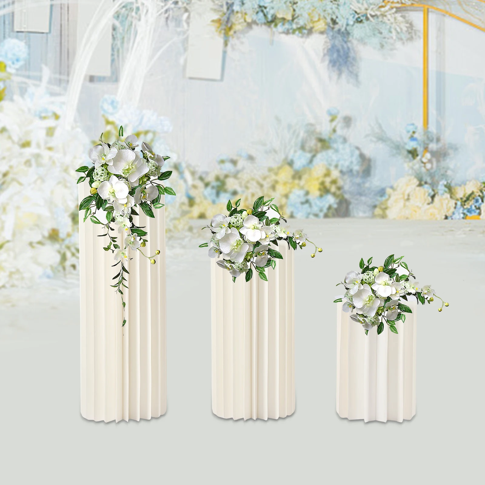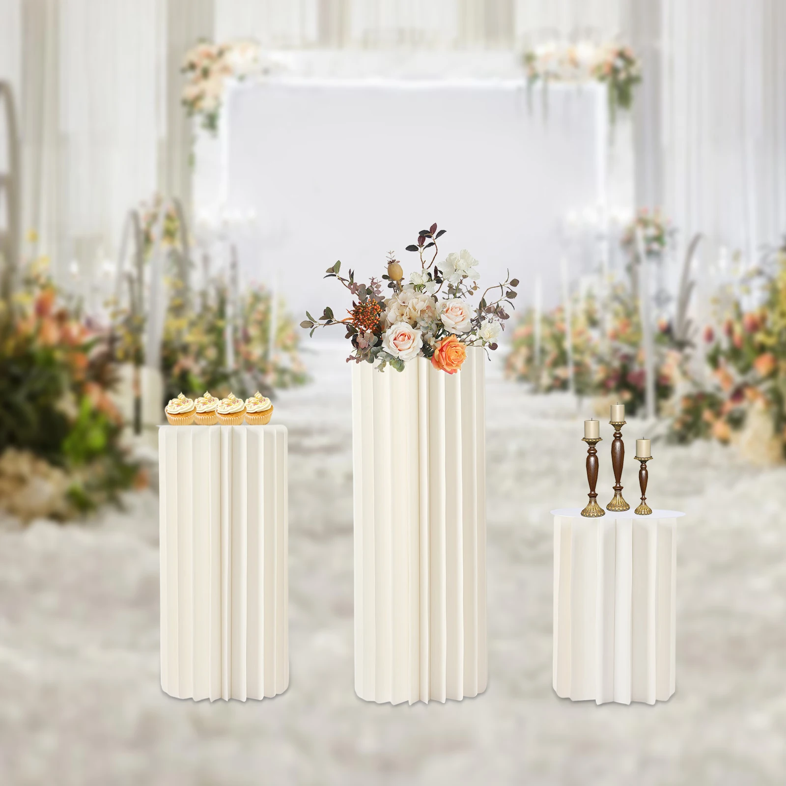 3PCS Wedding Party Flower Stand Cylinder Foldable Cardboard Centerpiece Dessert Table Columns Display Stand 40+60+80cm