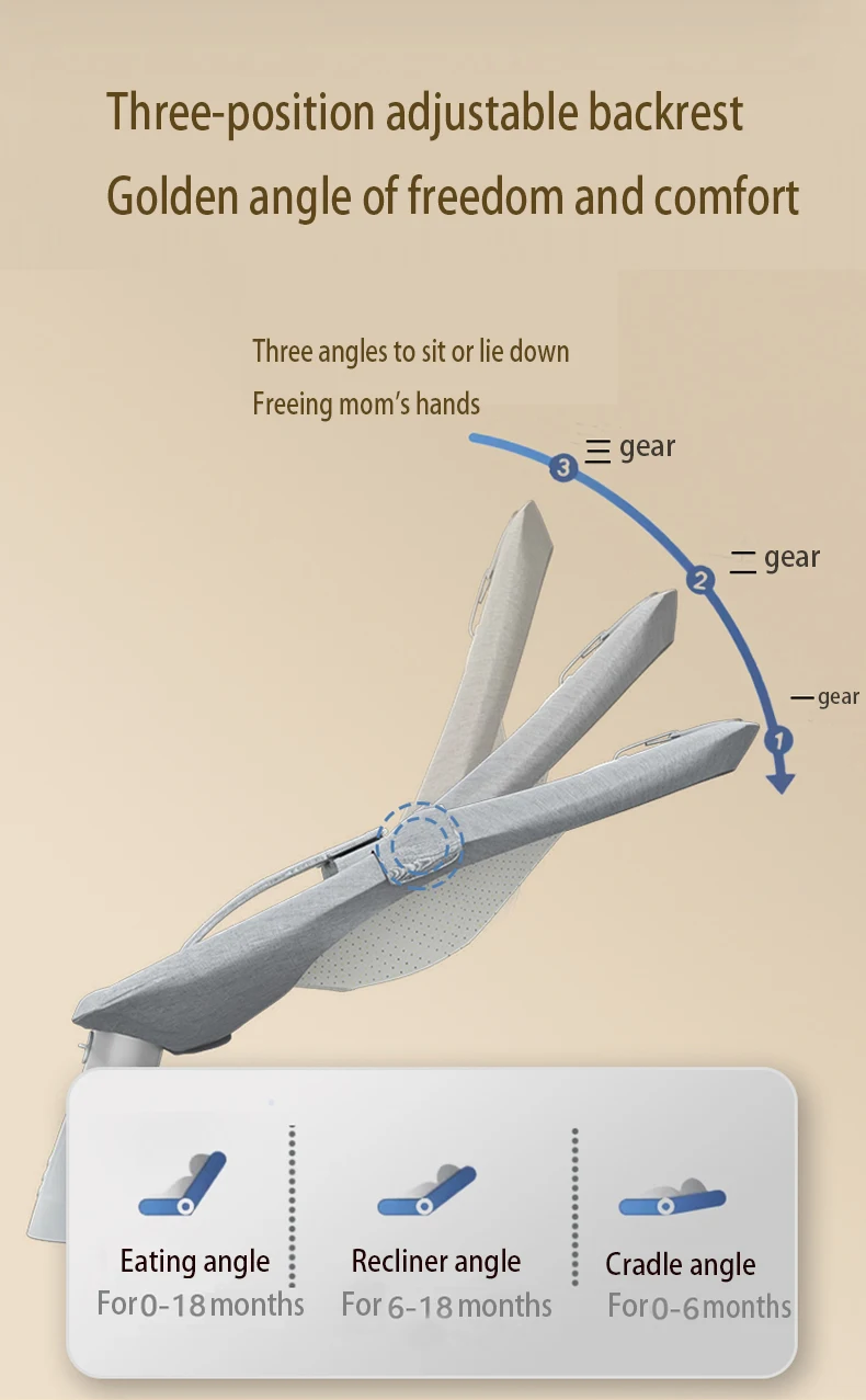 Notre balancelle a été conçue pour envelopper votre bébé dans un cocon de douceur. Son siège rembourré offre un soutien parfait, tandis que ses multiples positions d’inclinaison permettent d’ajuster le confort, que bébé soit en phase de jeu actif ou prêt pour une sieste paisible. Les vibrations légères et le balancement doux imitent le bercement des bras parentaux, aidant bébé à s’endormir plus facilement.