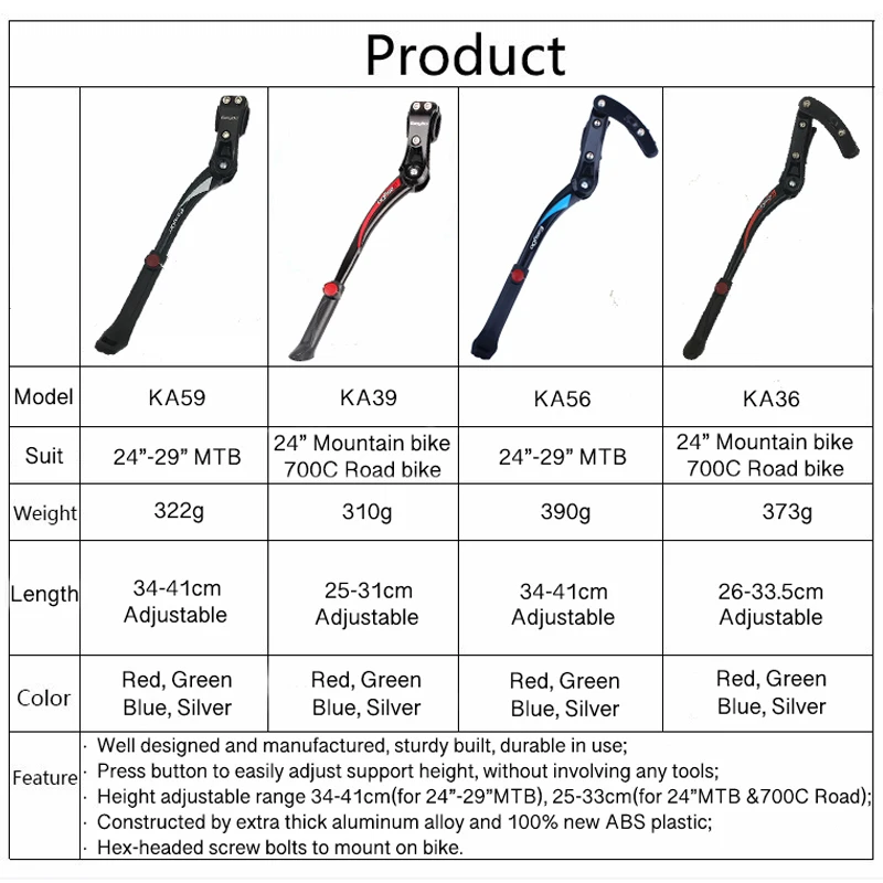 Béquille Vélo VTT Aluminium Réglable 24-29″ – Support LatéralBéquille Vélo VTT Aluminium Réglable 24-29″ – Support Latéral
