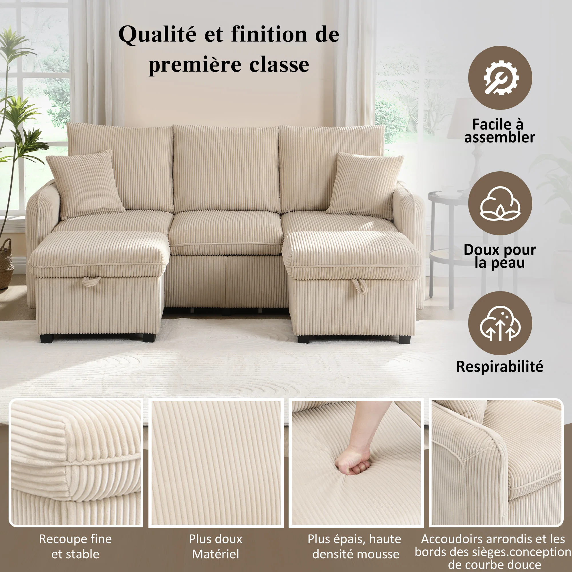 Canapé Modulable 3 Places Beige Convertible – Rangement IntégréCanapé Modulable 3 Places Beige Convertible – Rangement Intégré