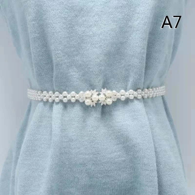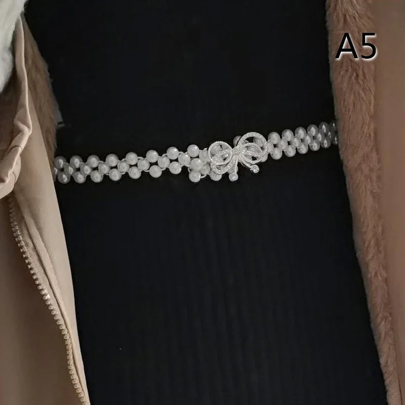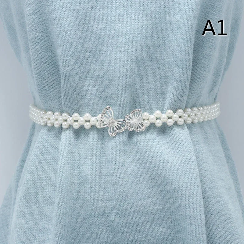Mettez en valeur votre silhouette avec cette ceinture chaîne élégante, alliant perles raffinées et élasticité pour un confort parfait et un style unique.