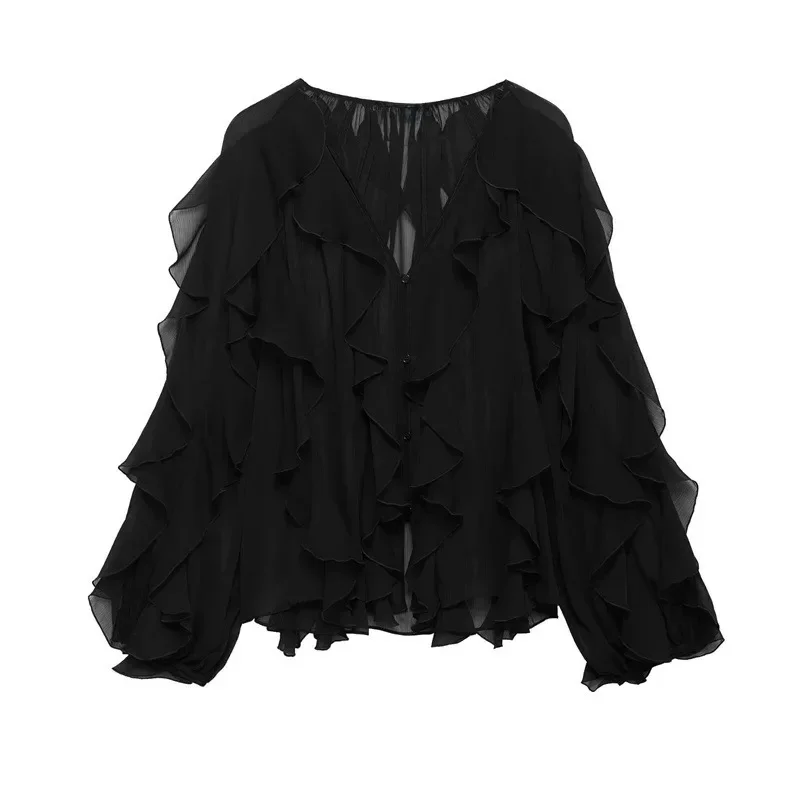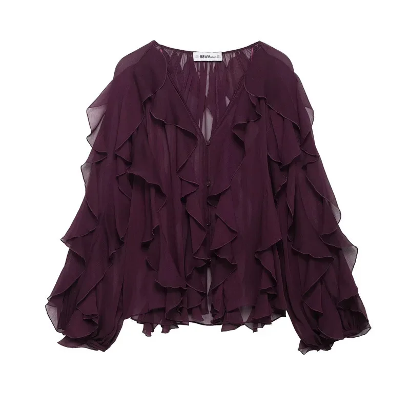 Adoptez un look tendance et décontracté avec ce chemisier femme au col V et manches longues, parfait pour toutes les occasions et un confort optimal.