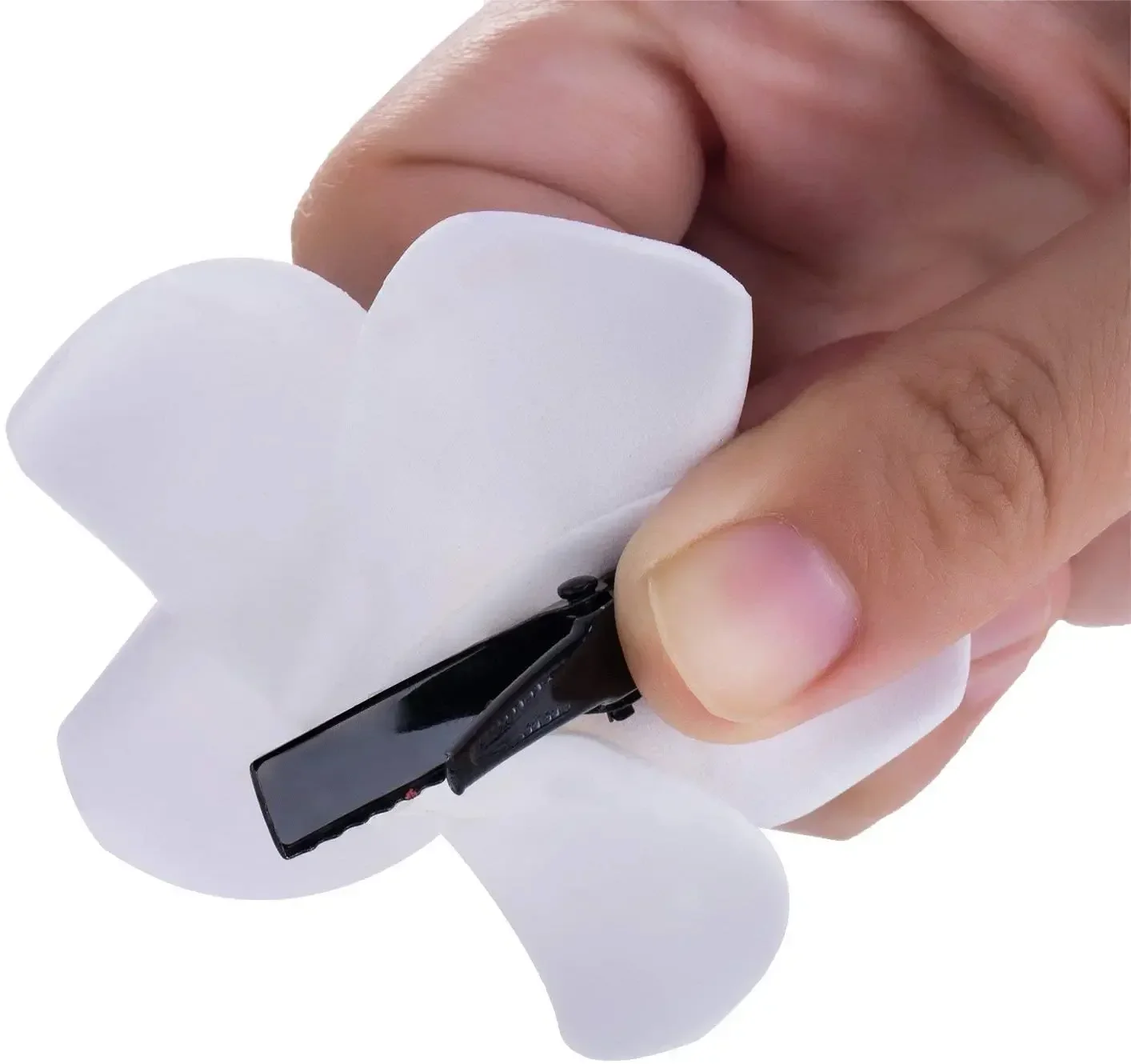 Chaque fleur est dotée d’un clip discret pour une fixation rapide et sécurisée dans les cheveux, sur des chapeaux ou décorations.