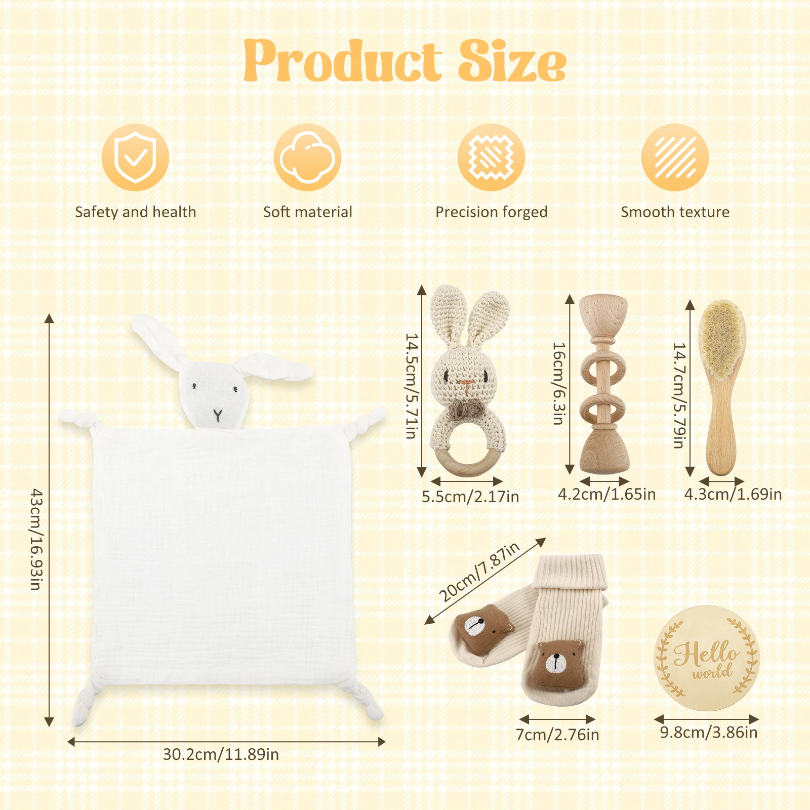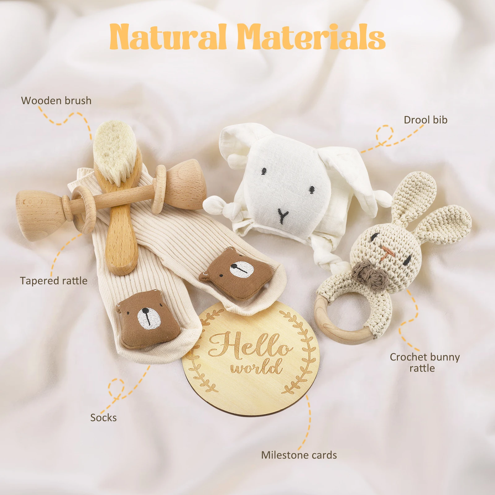 Couverture, Serviettes, Jouets en bois, Anneau de dentition, Carte « Hello World »