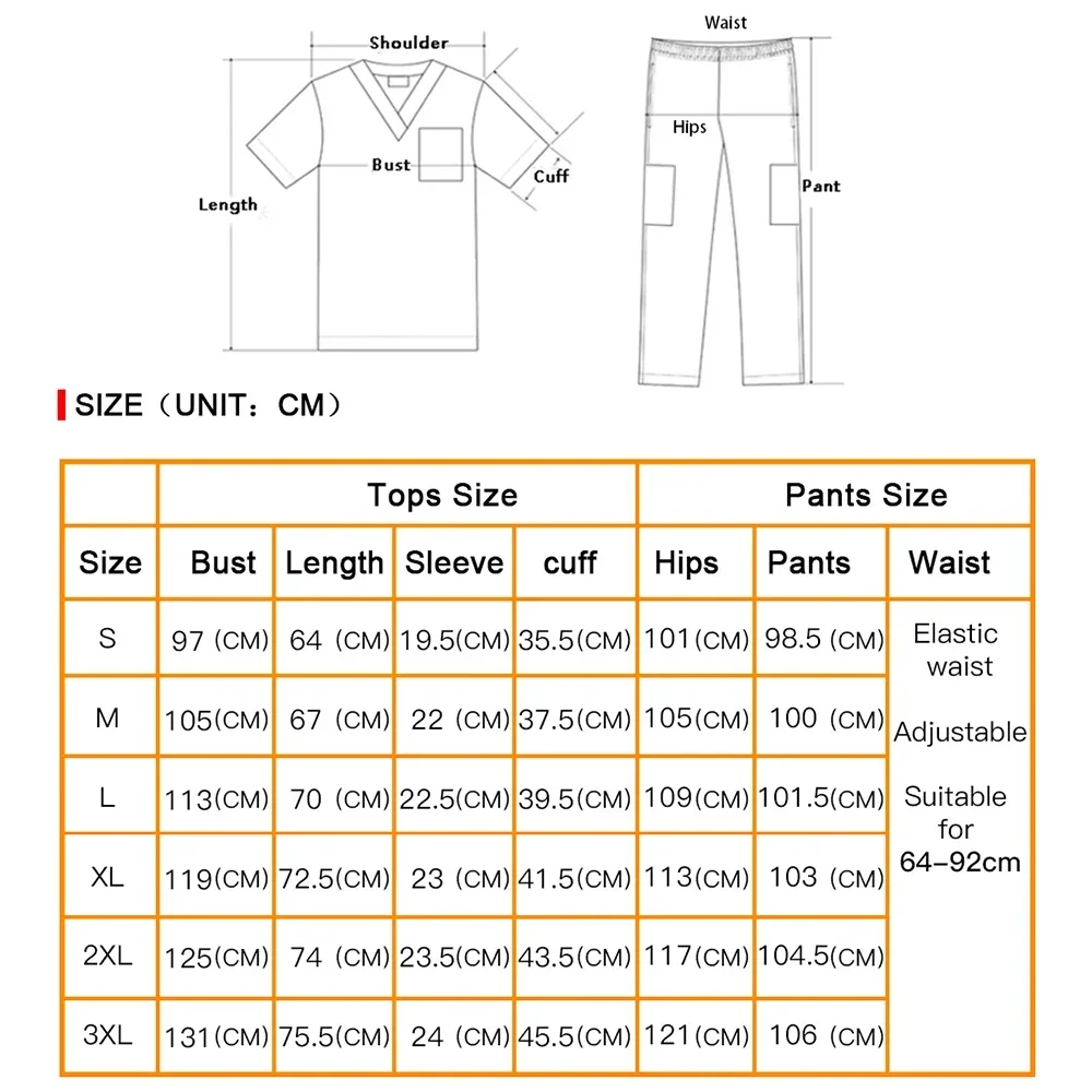 Fabriqués avec un mélange durable de polyester, rayonne et spandex, ces scrubs résistent aux lavages fréquents et à l’usure, conservant leur qualité.