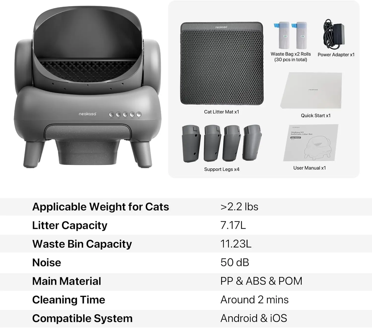 - Suivi Connecté Intelligent : Gérez et surveillez la santé via l’application Neakasa.