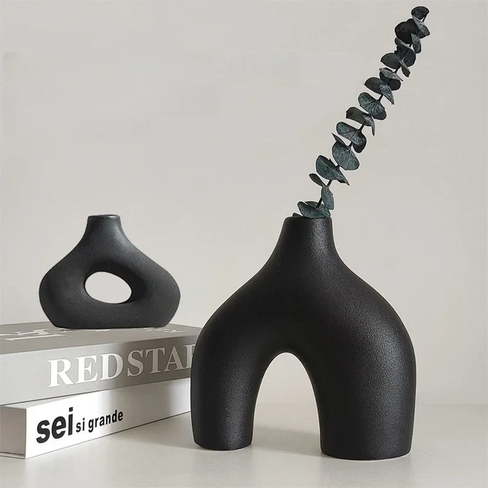 Lot 2 Vases Céramique Noirs Mats – Décoration Bohème & Moderne