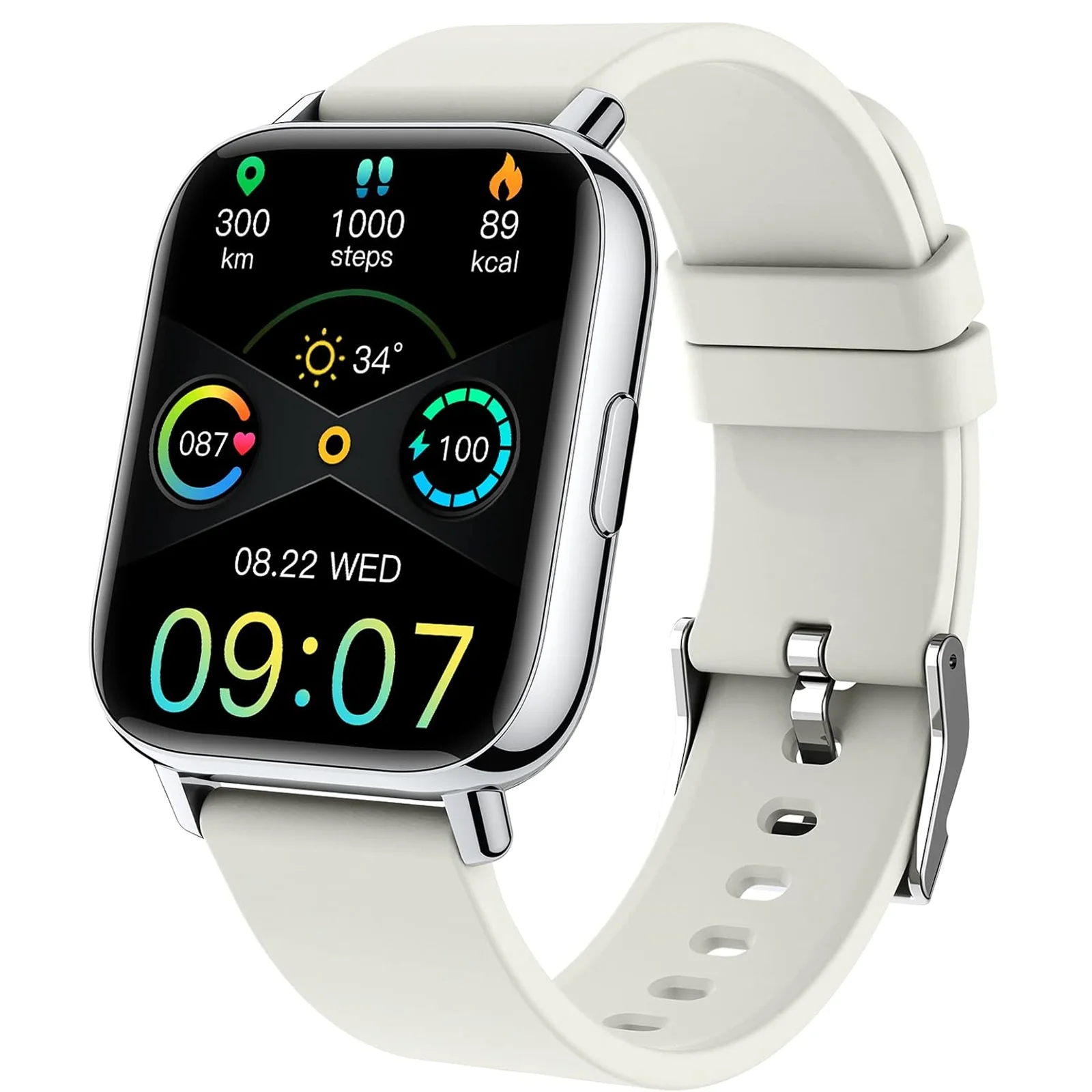 Écran tactile TFT de 1.69 » avec plusieurs cadrans, un design carré moderne adapté à tous les styles.