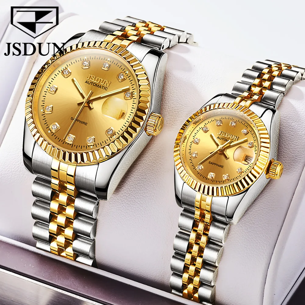 Montre Couple Automatique JSDUN – Saphir, Acier & Étanche 3 Bar