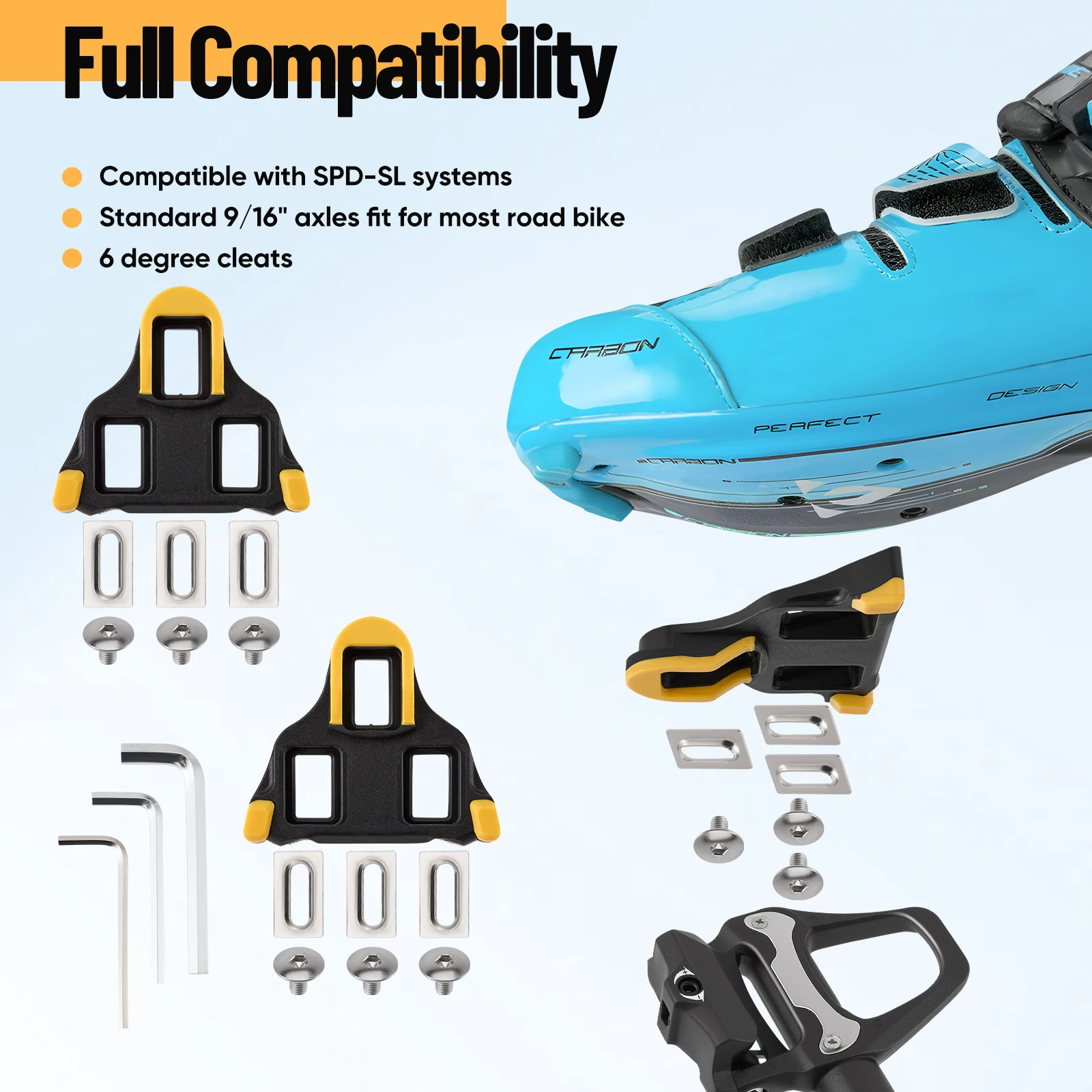 Ces pédales sont conçues pour être compatibles avec la plupart des vélos équipés d’un axe de 9/16 pouces, incluant les VTT, les vélos de route et les vélos de gravel. L’installation est rapide et simple, grâce aux accessoires de montage et instructions claires fournis, vous permettant de les utiliser sans délai.