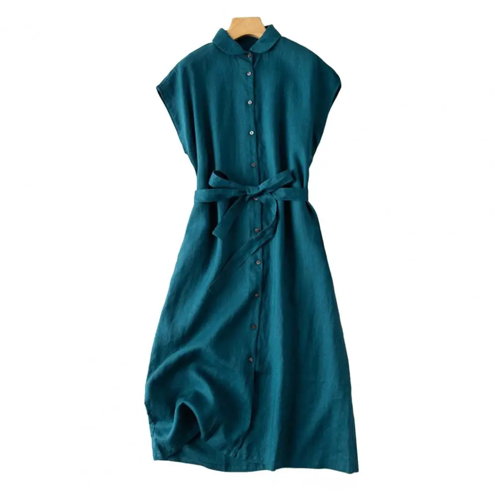 Robe Chemise Midi Lin Coton Femme – Chic Décontracté ceinturéRobe Chemise Midi Lin Coton Femme – Chic Décontracté ceinturé