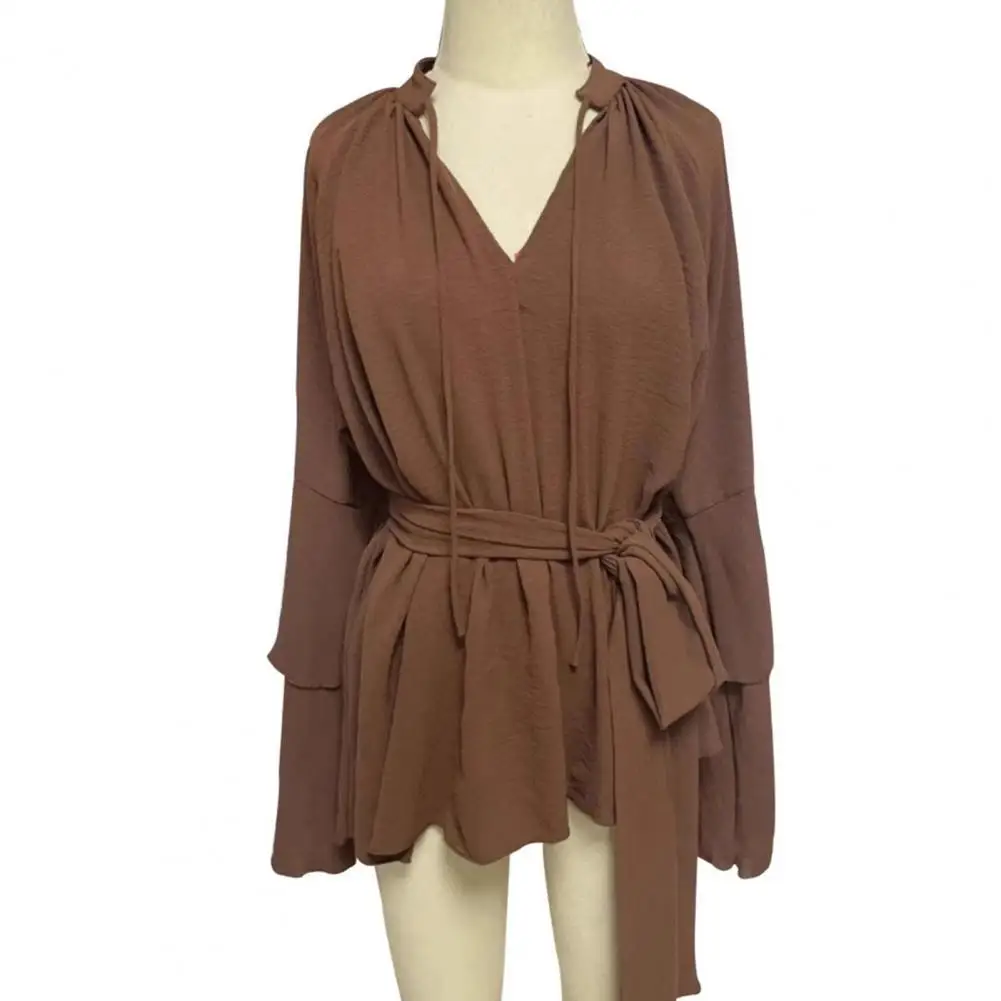 Adoptez cette robe polyvalente à manches longues, col V et volants pour une allure décontractée élégante, parfaite pour vos vacances et quotidiens estivaux.