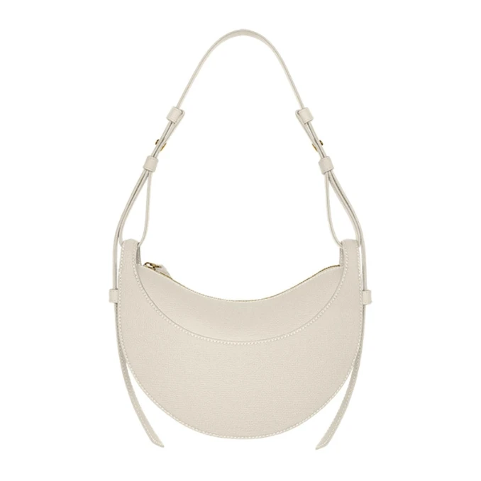 Sa forme de croissant unique et sa finition en cuir lisse apportent une touche de modernité et d’élégance à votre look, parfait pour toutes les occasions.
