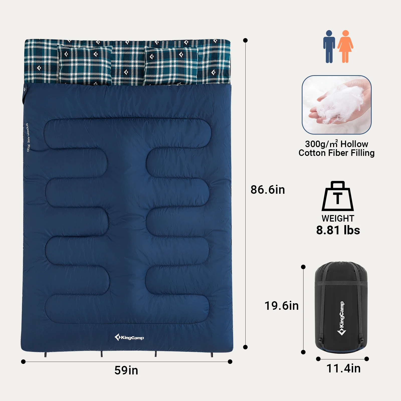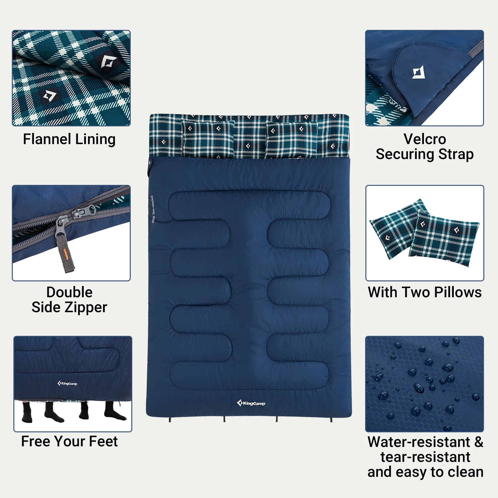 Sac de Couchage Double KingCamp XXL – Flanelle Imperméable 2 Pers.Sac de Couchage Double KingCamp XXL – Flanelle Imperméable 2 Pers.