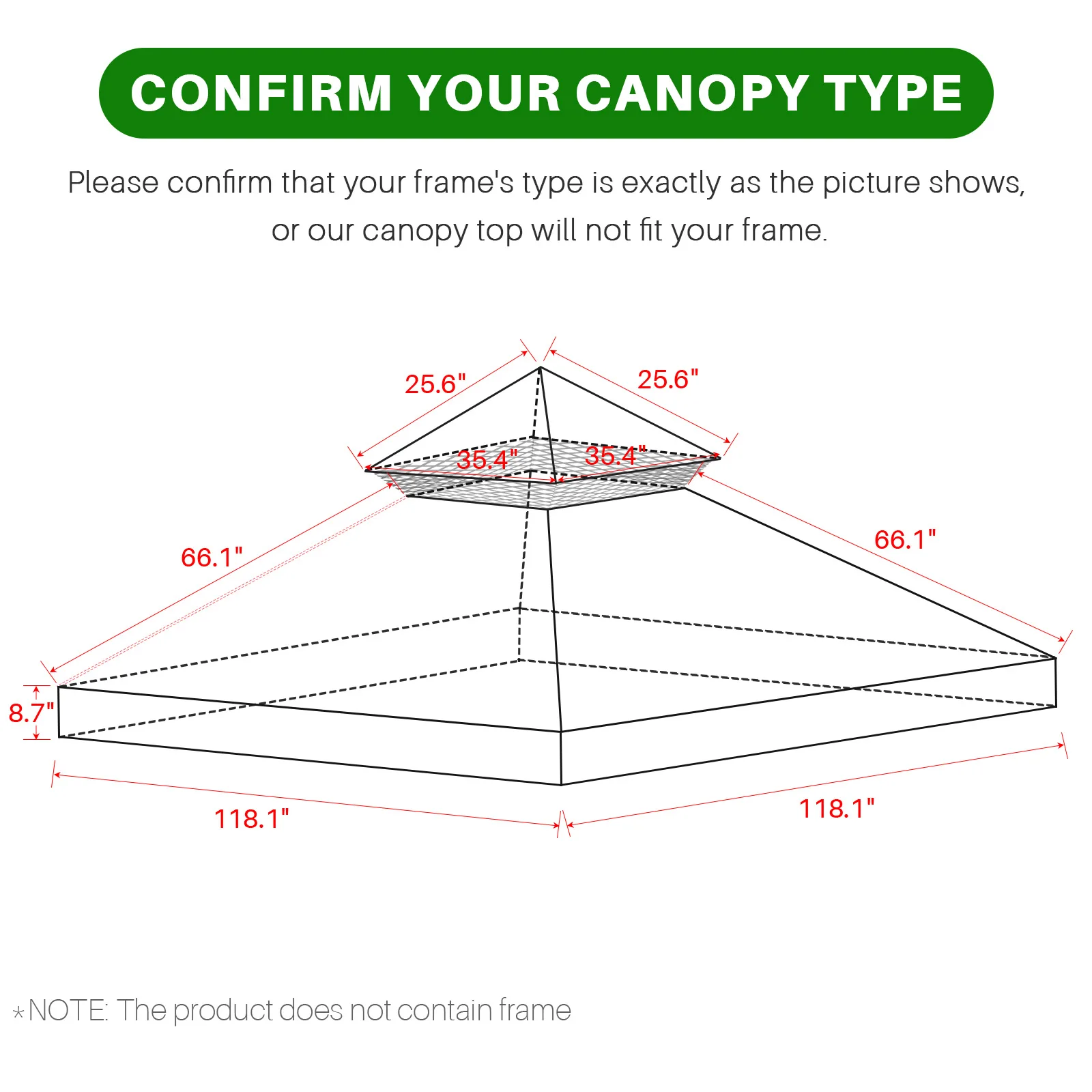 - Design Carré Adapté : Conçu pour la plupart des structures de tonnelles carrées doubles.